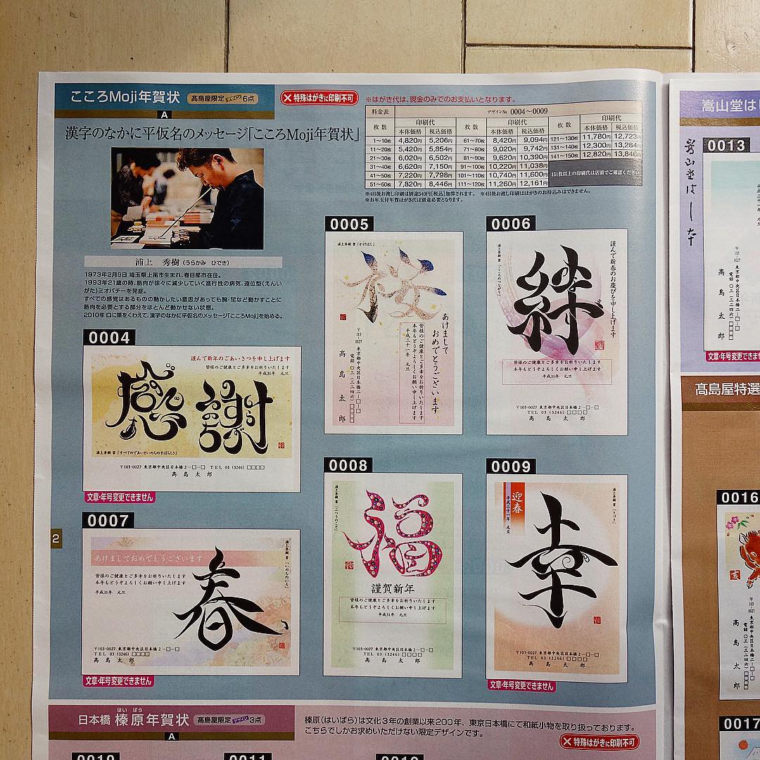 Home お知らせ【高島屋の年賀状印刷】2019年こころMojiが年賀状に高島屋限定デザイン6点!